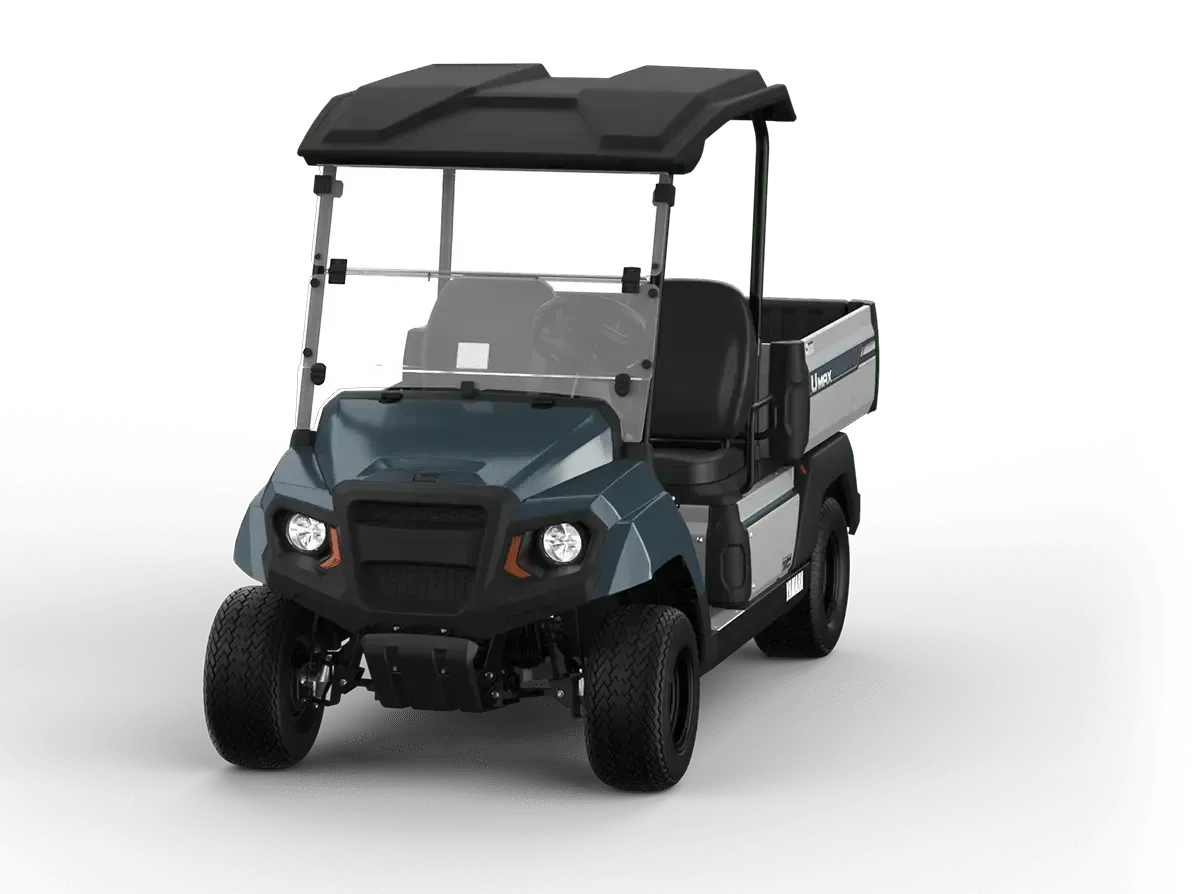 The UMAX Rally is built to handle it all with lifted suspension, 23” tires, brush guard, and deFender fender flares. NEW for 2026: integrated LED brake and taillights, contoured high-back seats, redesigned steering wheel, lightweight suntop, new rear-view mirror, and an onboard charger—with a top speed of 19.5 mph.